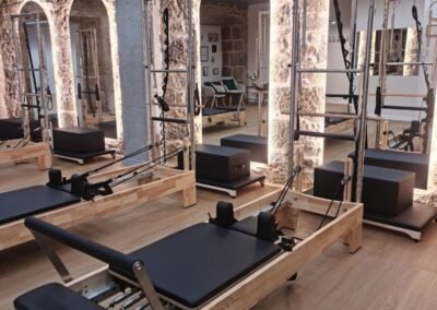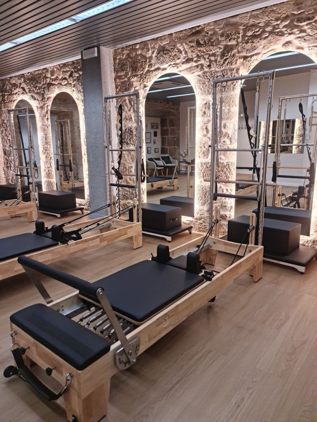 En este proyecto desarrollado en Vilagarcía de Arousa, se ha integrado equipamiento de Pilates en un espacio con fuerte identidad arquitectónica, respetando y potenciando los elementos originales como la piedra natural y los arcos estructurales.