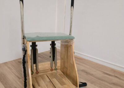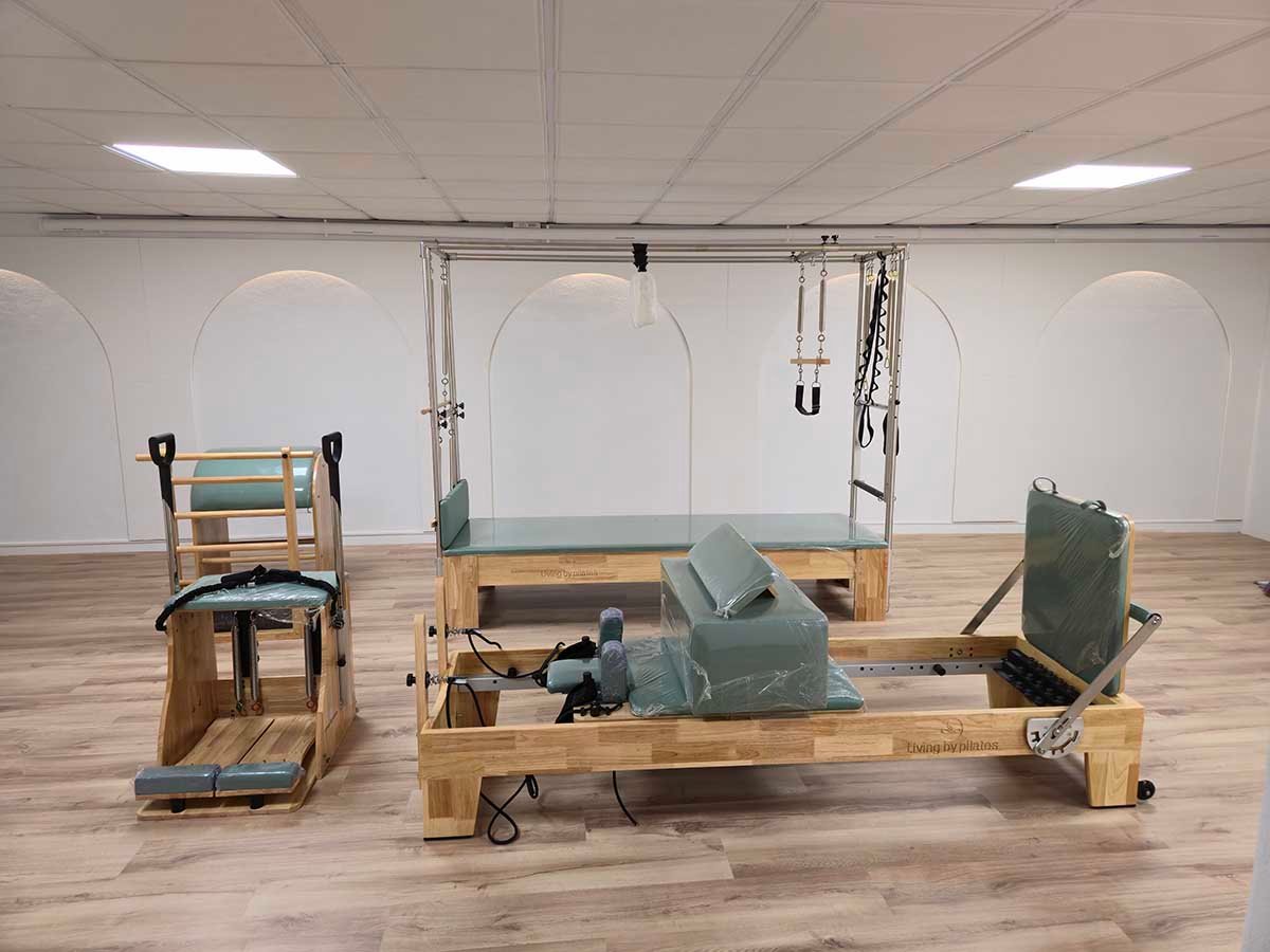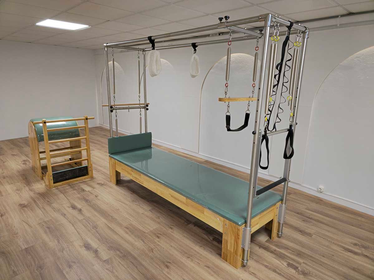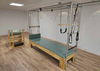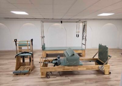El estudio ha sido equipado con una gama completa de máquinas de Pilates, incluyendo reformer con torre, barrel y chair, permitiendo un trabajo adaptado a diferentes necesidades terapéuticas y niveles de condición física.