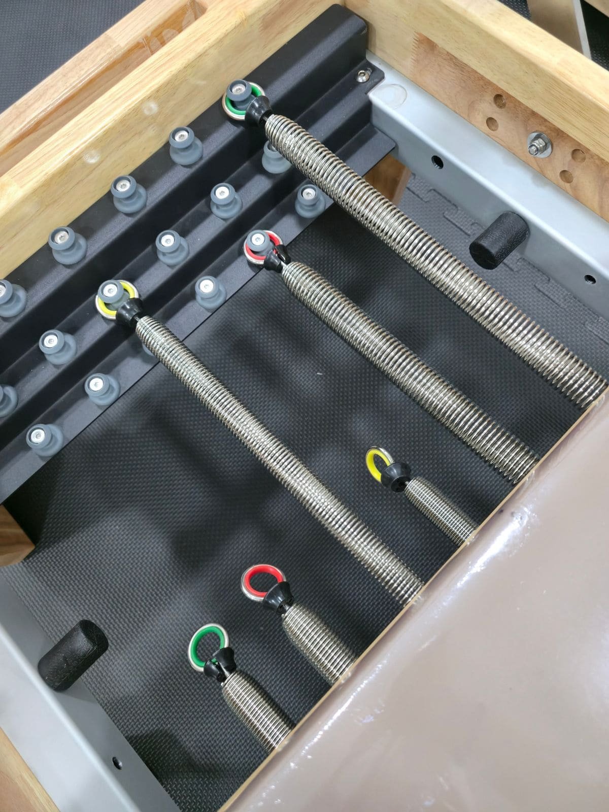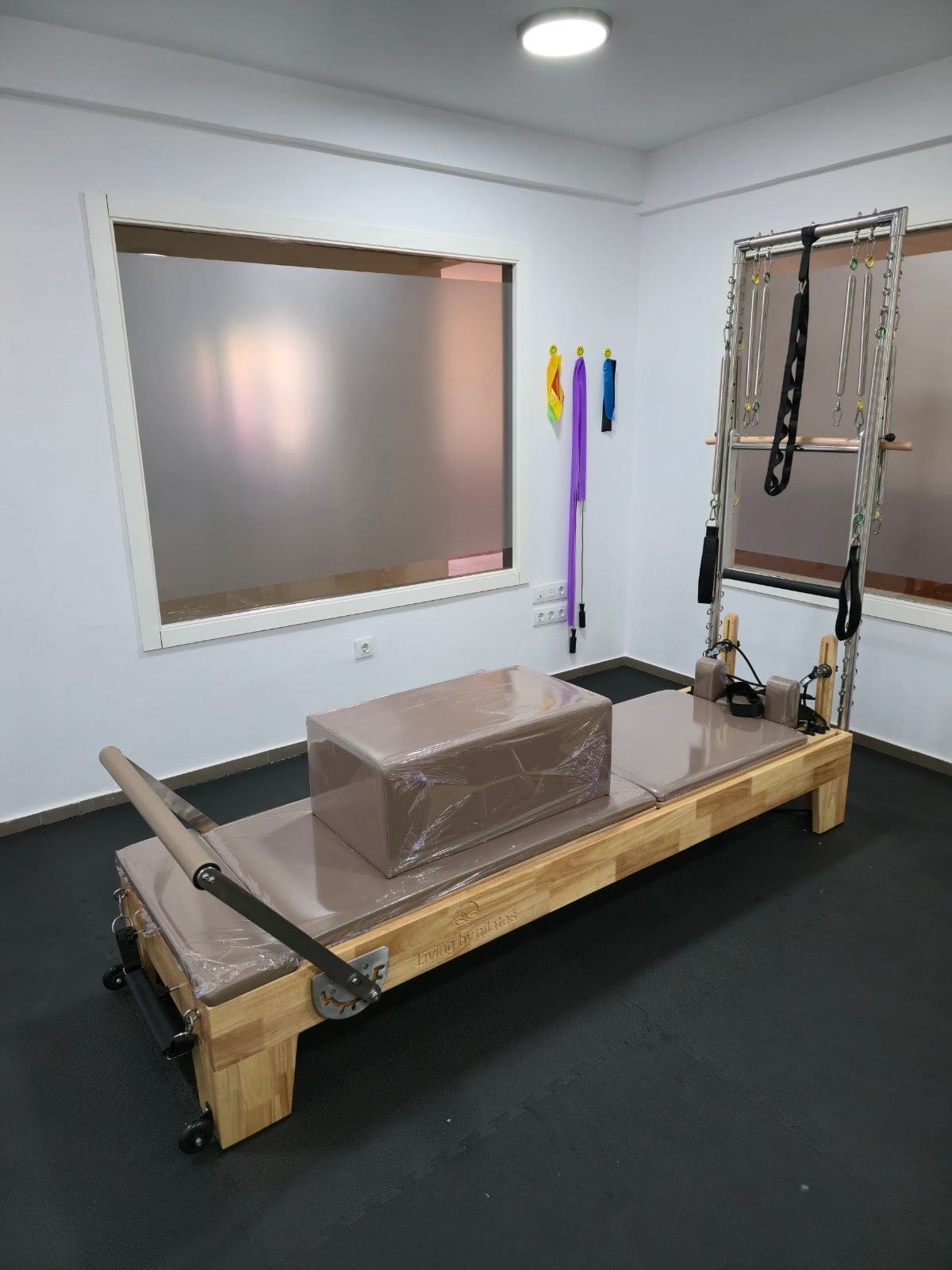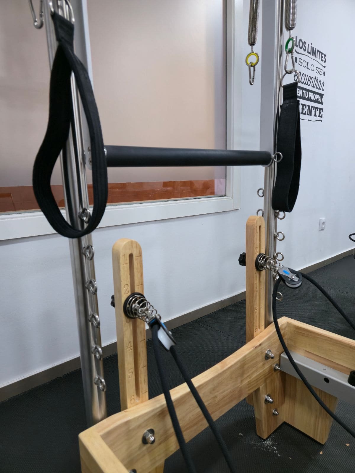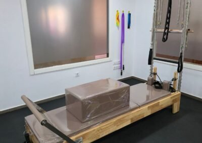 El centro cuenta con reformers de madera con torre, así como equipamiento adicional como silla de Pilates y accesorios, lo que permite trabajar de forma completa tanto la rehabilitación como el acondicionamiento físico.